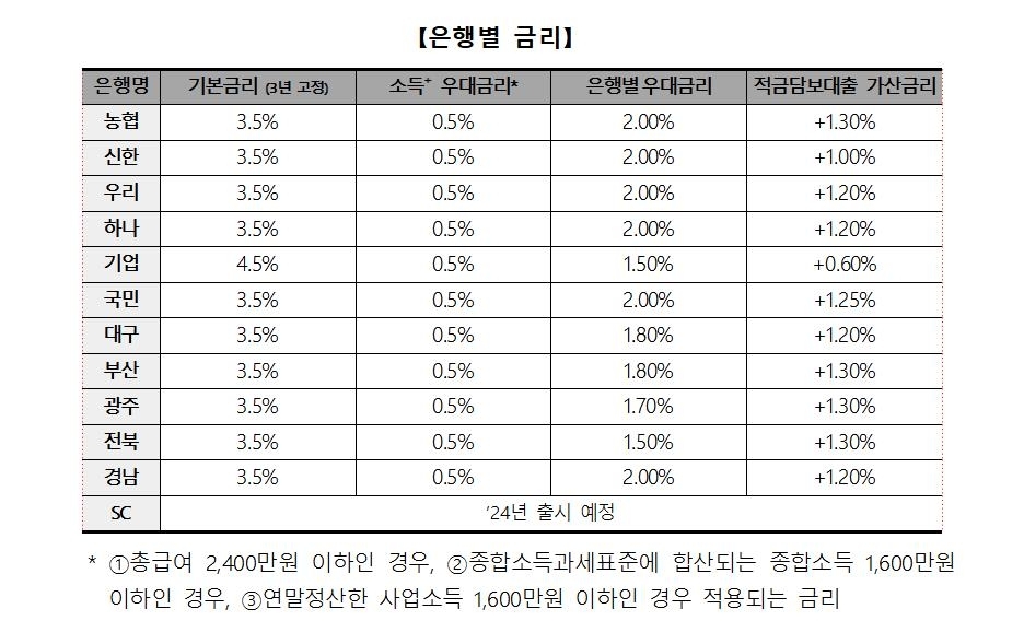 A. 가입후 3년은 고정금리, 이후 2년은 변동금리가 적용된다. 2년 변동금리는 해당시점의 기준금리와 고정금리 기간 중 적용됐던 가산금리를 합해 설정될 예정이다.